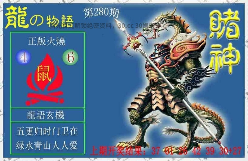 280期:六肖爆庄〖兔马龙蛇牛〗开:鼠42中